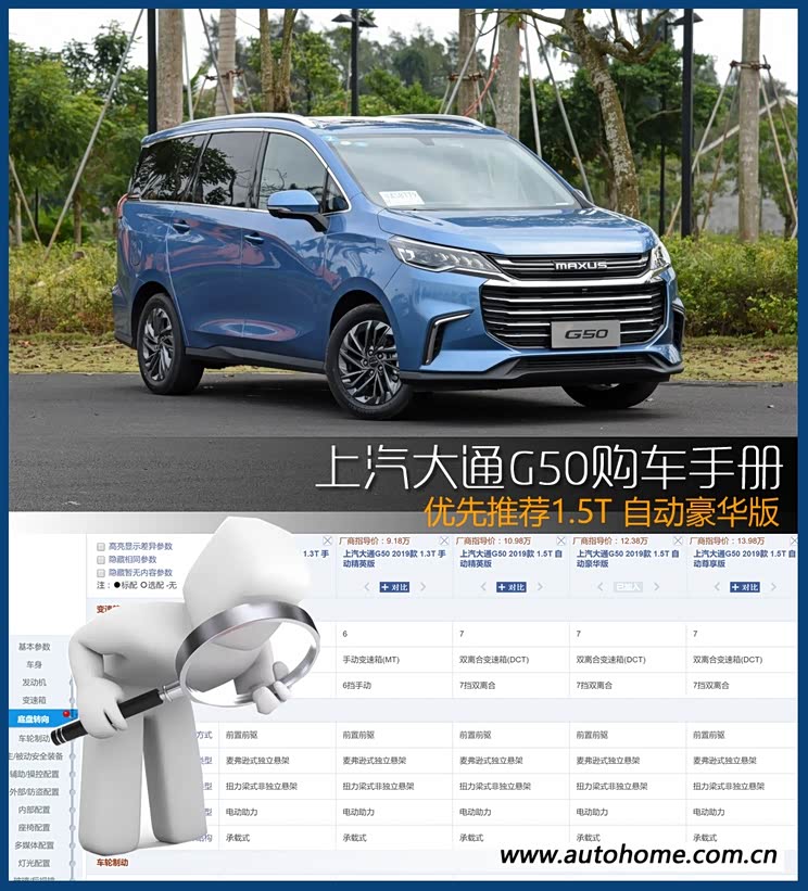 购车手册 前不久,上汽大通G50(参数|询价)正式上市。新车虽然提供C2B定制化的销售模式,但是厂家给出了6款配置的推荐车型,其指导价格区间为8.68-15.68万元。如果您觉得自主定制太“繁琐”,更喜欢比较传统的选车购车方式,那么本次上汽大通G50的购车手册您不应错过。