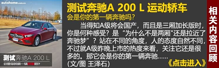 A级前排座椅舒适度不错,很适合日常驾驶,中间的翻毛皮能够增大身体与座椅的摩擦,激烈驾驶时能够适当弥补一些座椅包裹性的不足。后排座椅的座垫特意为中国市场加长了20mm,增厚10mm,厚度没问题,但座垫实在是有些低,对大腿的支撑并不太理想。空间表现上,身高185cm的体验者坐入车内,前后头部空间都略显局促,但后排腿部空间还是不错的。