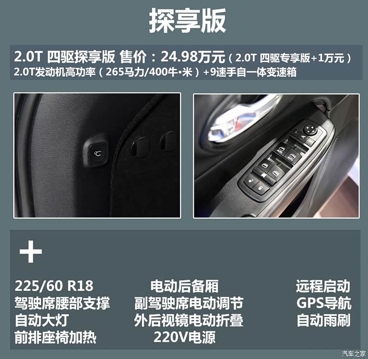 车型推荐:2.0T 四驱探享版推荐指数:★★★★
