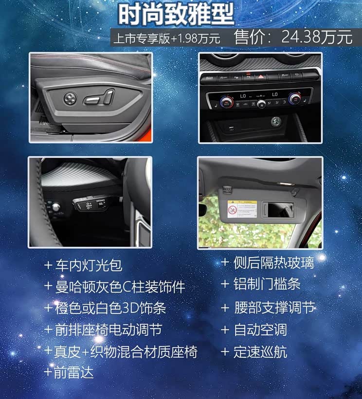 全新奥迪Q2L个性化选装装备价格表车型/装备进取动感型上市专享版时尚致雅型时尚动感型豪华致雅型