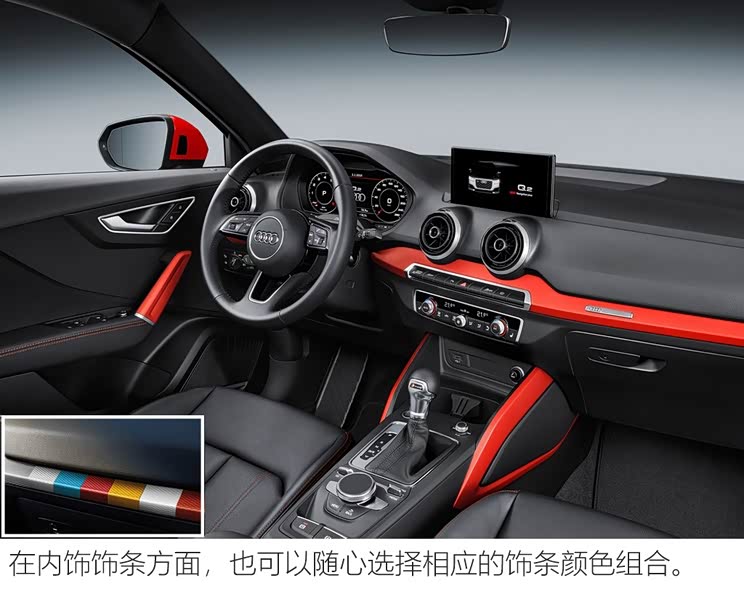 奥迪为Q2L提供了丰富的选装包选择,从C柱装饰、轮圈、车内饰条、座椅到音响、多媒体系统等各个方面都支持不同方式的选装,用户可以根据自己的需求量身定制自己的爱车。