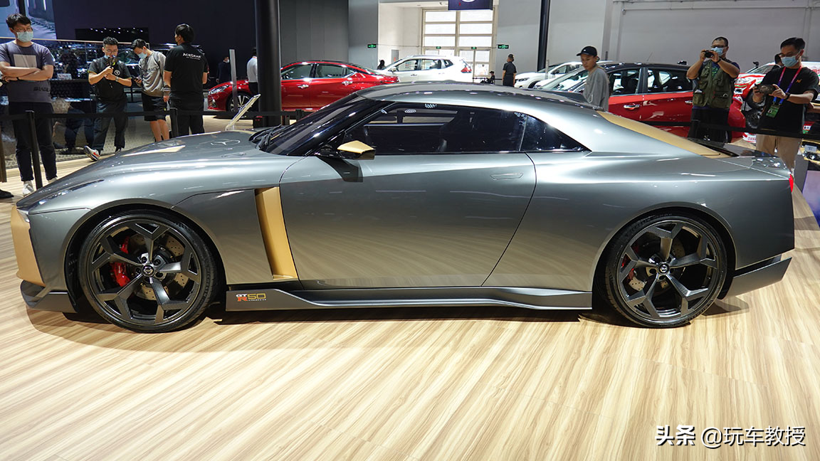 得益于经典车顶线条的保留,让GT-R50一看就知道是GT-R的延伸车型,不过其造型升级相当明显。车侧看着更显低矮,尺寸比现款车型更长,同时车窗面积很小,整体视觉效果更出众。