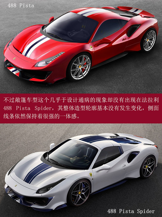 不过对于488 Pista Spider来讲,并不存在这个问题。敞篷版本几乎完美复制了,普通硬顶版对于车型造型的表现,并没有因为特殊的结构影响视觉效果。