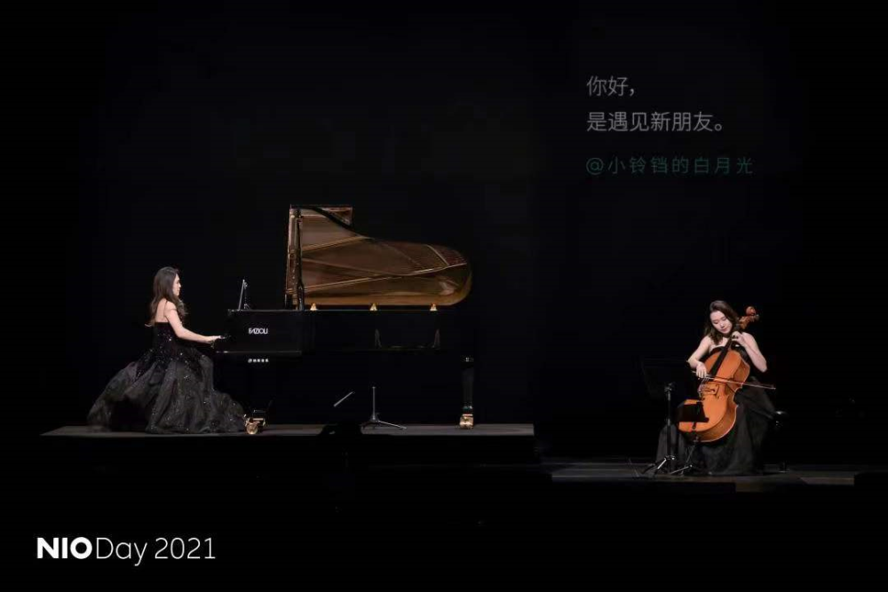 在发布会现场,蔚来用户甚至还组成了一个乐队,从钢琴到大提琴,现场演唱了全新单曲《你好,世界》。