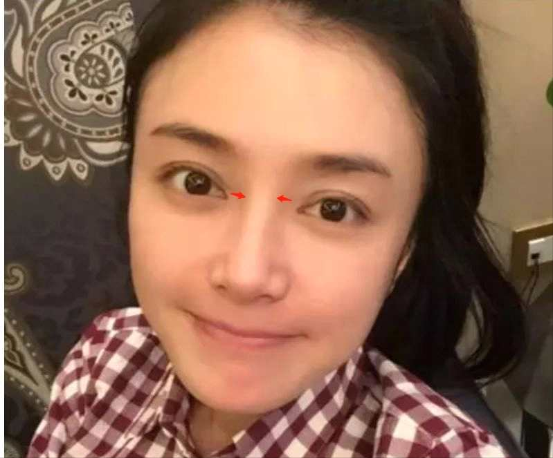 山根同样也会间接导致瞳距近。如果你的山根不仅高还粗,也会显得眼距更近。因为山根过高时,会受到一个向中间的拉扯力,从而缩短两眼之间的距离: