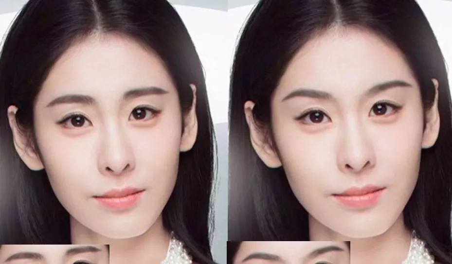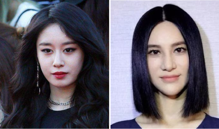 而且如果你的内眼角很尖、眼距很近的话,就不要再给自己加个高山根了,看看朴智妍和尚雯婕的对比,相较来说,朴智妍不那么高粗的山根会和谐很多: