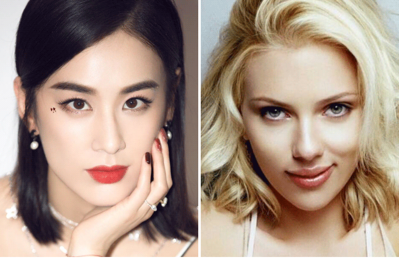 比如说黄圣依与斯嘉丽相对比,明显能看出斯嘉丽的眼距更近,但她就没有明显的斗鸡眼,主要还是因为她的眼珠位置更居中: