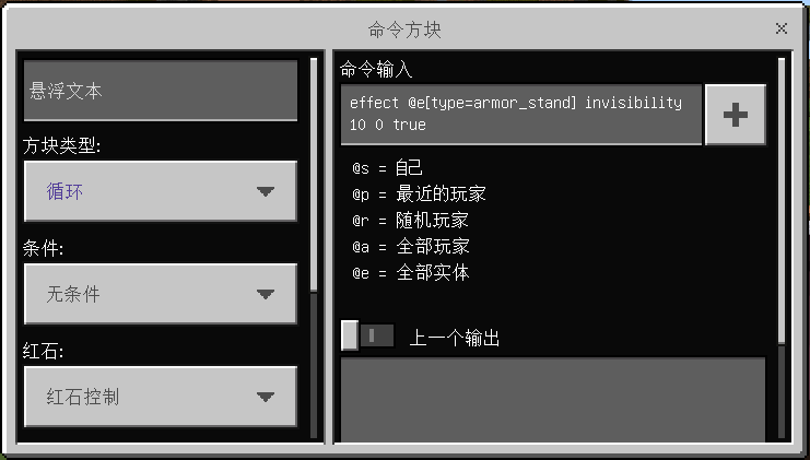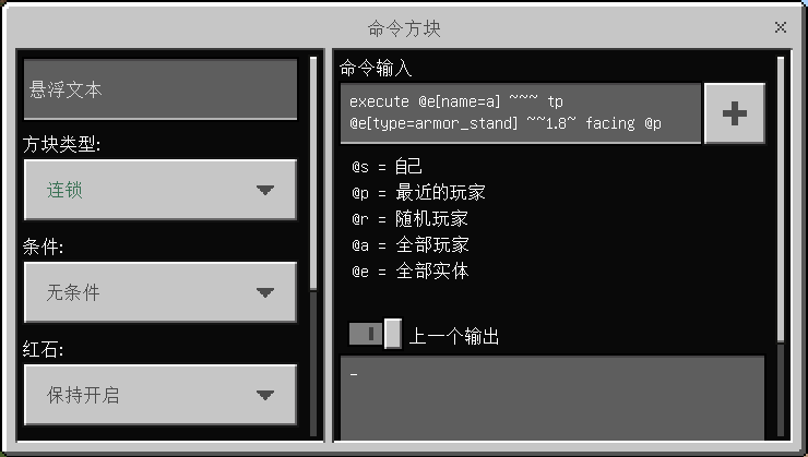 这条指令能让盔甲架隐身,这样冒险家就只能看到倒过来像皇冠一样的钻石头盔啦~