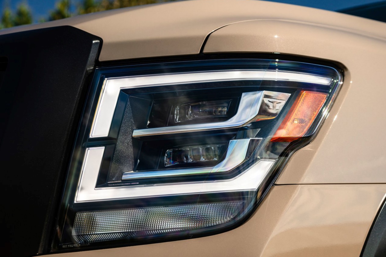 Titan是日产针对美国市场开发的一款全尺寸皮卡,它的竞争对手就是丰田坦途以及福特F-150。这款皮卡搭载一台5.6L V8自然进气发动机,最大功率390马力,最大扭矩534牛米,匹配日产自家的7速手自一体变速箱(2020款升级为9AT),并有两驱与分时四驱版本可供选择,驾驶室也有单排、排半和双排可选,车型十分丰富。尺寸方面,它的双排标准版长宽高分别为5792mm、2020mm、1931mm。