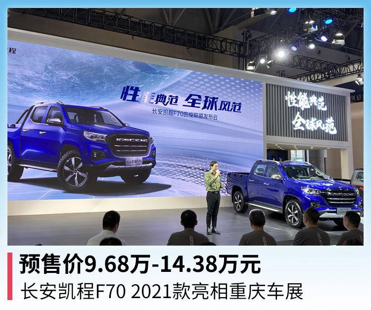 6月12日,2021(第二十三届)重庆国际汽车展览会在重庆国际博览中心拉开帷幕。长安凯程携五款皮卡车型和两款新能源车型亮相N8展馆,并正式开启了2021款凯程F70的预售,预售价9.68万-14.38万元。