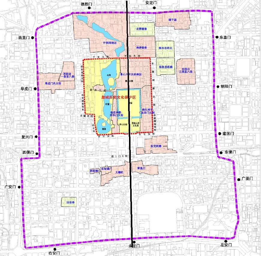 北京中轴线附近,主要有几个不以中轴线为界的地方,它们还都是面积比较大的,也比较著名的文化遗产。