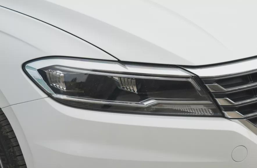 2022款车型在外观设计方面与现款在售车型差别不大,整车依旧是经典的大众脸。其中新车前脸部分使用了倒梯形的前进气格栅,内部以横幅式镀铬饰条作为填充,左右两侧造型扁平化的前大灯组与中网连接,提升了前脸的视觉宽度,而中间所配备的大众扁平化标识看上去也很精致。
