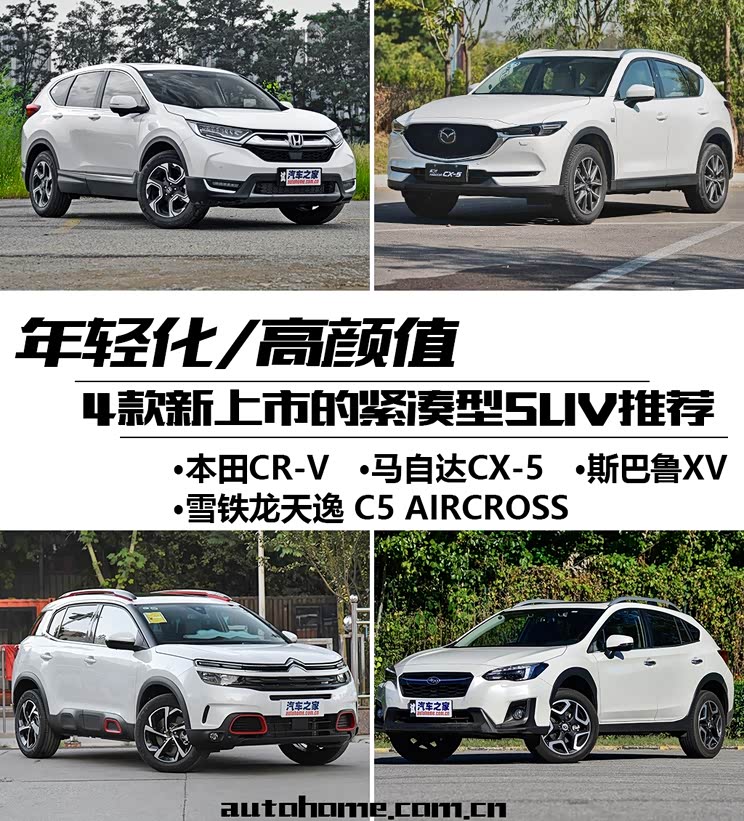 这四款车分别是本田CR-V、马自达CX-5、雪铁龙天逸和斯巴鲁XV,其中,斯巴鲁XV是这四款车中唯一一款进口车型,那下面我们来逐一看看这四款车的表现吧。