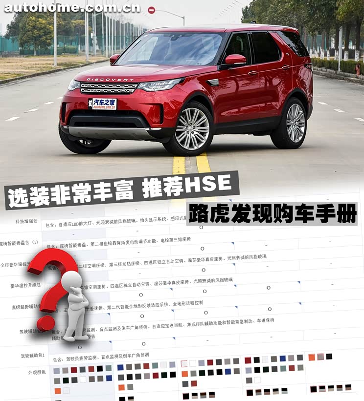 购车手册 路虎的发现一直以来都以其方正的造型和强悍的越野能力闻名于世,而现在,全新上市的发现放弃了有棱有角的外形和非承载式车身,定位上也和当年的硬派越野车有所不同,相信有一些消费者对于这样的变化嗤之以鼻,而另外也会有一些消费者很欢迎这样的转变,如果看到这里的您属于后者,那么本文就是为您所准备的,让我们一起看看发现车系中哪个车型最有性价比、最值得购买吧。