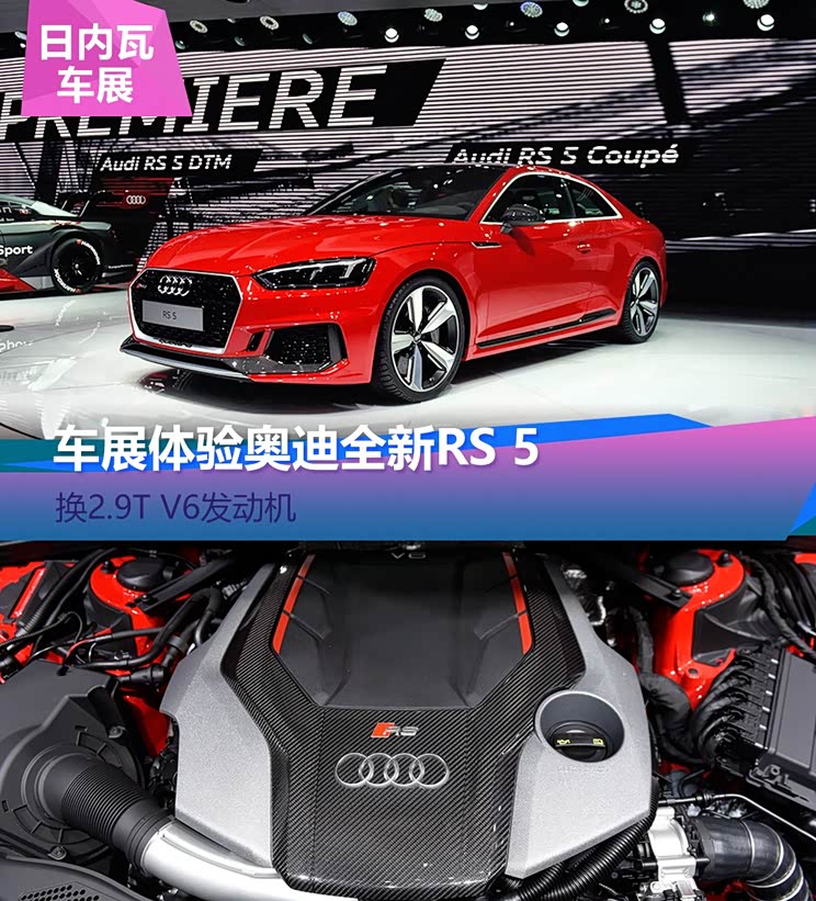新车图解 今年的日内瓦车展看着真是过瘾,高性能狠货一个接着一个,这才是车展应有的样子嘛!下面我就带领大家看一看其中的狠货之一——奥迪全新RS 5 Coupe。这台车最大的亮点就是取消了之前的4.2L V8发动机,取而代之的是一台2.9T V6双涡轮增压发动机。没错,就是和保时捷全新Panamera 4S同款的那台机器!