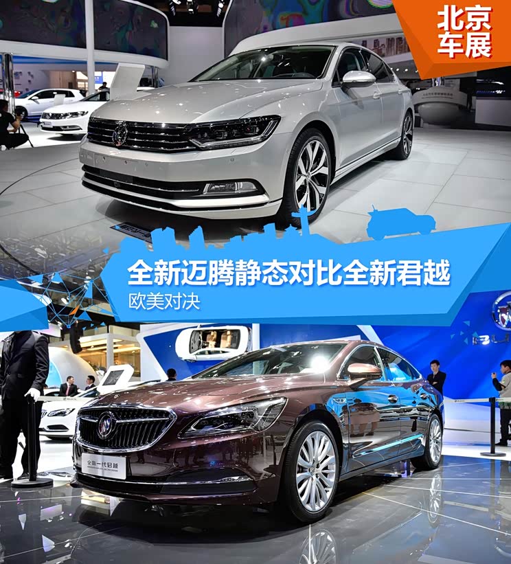 新车图解 2016年北京车展,一汽-大众发布了基于Passat B8打造的全新迈腾,现款迈腾自从上市之后就一直保持着出色的市场表现,而被大家寄予厚望的全新迈腾无疑成为了最受关注的车型之一。在中型车这个战火纷争的市场想要一枝独秀是不太可能的,和全新迈腾定位非常接近的全新君越就是不可忽视的一员大将,所以它俩之间的对比就在所难免了。