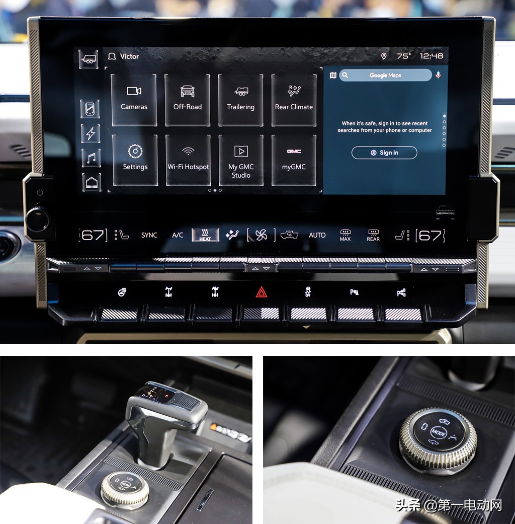 在保留了悍马车型粗犷风格的同时,你会发现12.3 英寸的仪表盘和13.4 英寸的中央触摸屏带来了相当不错的未来感。大量的平直线条打造出棱角分明的中控台,包括矩形的空调出风口都令人印象深刻, 14 个扬声器的Bose音响系统满足高品质听觉需求完全没有问题。
