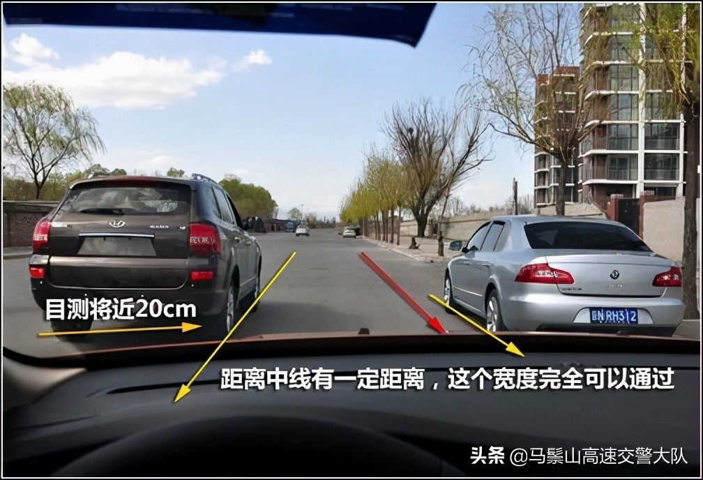 在没有车道线的狭窄路面上怎么判断车辆能否通过呢,这就要综合上面两种情况要判断了。首先驾驶员应当对路面宽度有一个大概的预估,应当放慢车速。因为驾驶员位于车辆左侧,所以左侧距离把握相对比右侧从容,车辆可以适当的贴左。