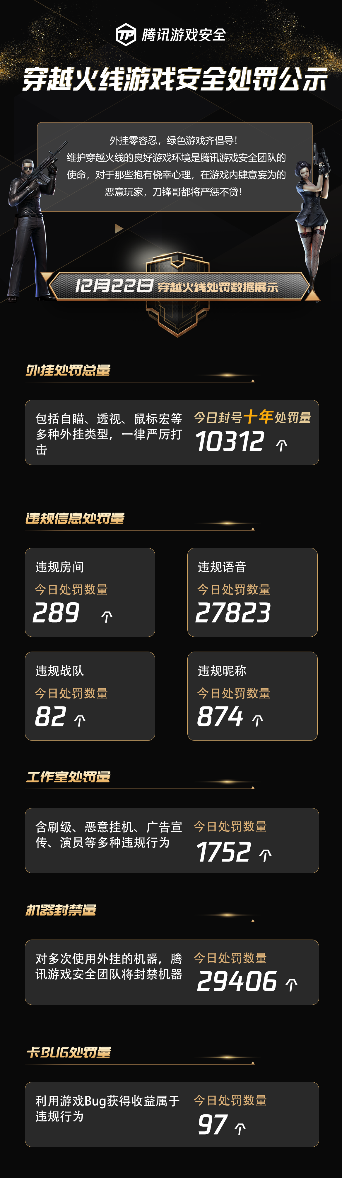 以上就是一些关于12月22日穿越火线游戏安全处罚公示的相关内容以及这类内容周边的一些相关知识点,希望通过的介绍,对大家有所帮助!后续我们还会更新更多关于的相关资讯内容,关注我们,每日了解最新热点资讯,关注社会动态!