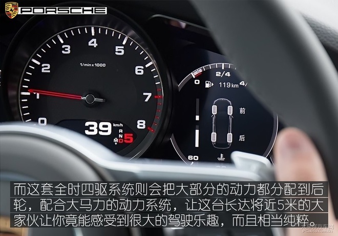 如果大家迫不及待想看保时捷的驾驶感受到话,又嫌弃文字太啰嗦,可以点击视频讲解观看,虽然有点辣眼睛,但是也是值得一看。如果想看图文讲解,可以继续往下看。正如我前文提到,如果你想要真的了解这代Cayenne的驾驶感受的话,首先得先了解这代Cayenne与驾驶员“沟通”的方式。从现在这一代的Cayenne的内饰就可以看出端倪,Cayenne的仪表盘唯独只有转速表保留了机械表的形式,其次,驾驶模式的选择被布局在了方向盘上,这也是保时捷关于驾驶层面的内饰件最大的改动。因此,在驾驶过程中,可以细致感受一下转速表的变化,还有体验一下不同模式下这代保时捷Cayenne给你带来的驾驶感受。