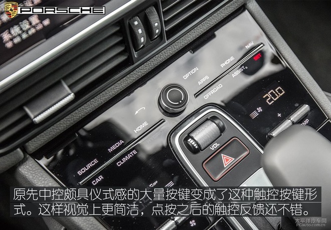 小结:更新潮的元素加入到了新一代的Cayenne身上让它显得跟上了时代,虽然外观上的变动不多,基本上都是围绕着空气动力学进行优化。在选装方面,外观的选项相对较少了一些,但是诸如车漆的选择、无钥匙进入、大尺寸轮毂等配置也相对比较昂贵,这些配置的选择就要看个人喜好了。内饰的简化笔者认为做得还是不错,老款Cayenne上面类似战斗机的按钮设定虽然看着很有仪式感,但是密密麻麻的按键其实上手的难度还是相对较高的。新款的内饰大量采用了液晶屏幕以及触感控制,这个“新款的战斗机”内饰一下子就从“二战”跳进“星球大战”,除了看起来更先进,更具未来感,上手的操作难度也着实降低了不少。