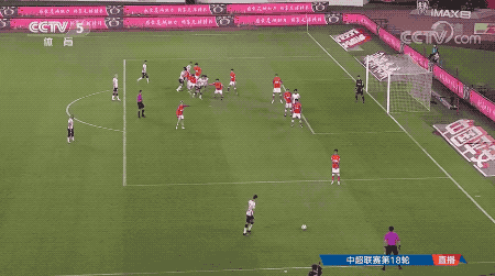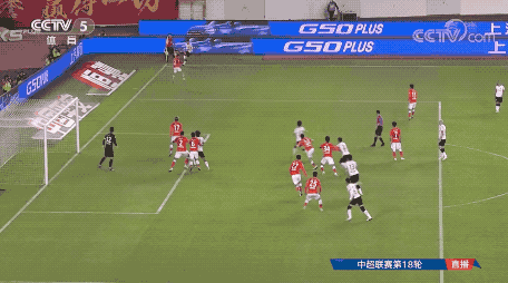 48分10秒,上海海港获得角球,奥斯卡将球传出,广州队门前发生混战。