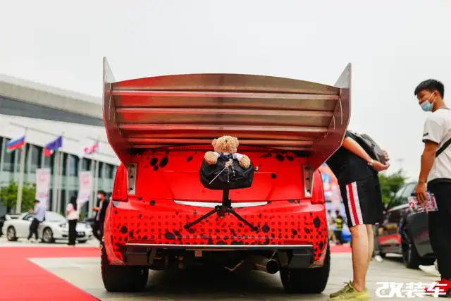开头说到了改装展会的热情,那么结尾就给大家看看,到底什么叫热情。这位思域车友在来参展的路上,车尾就开了花,后杠爆开尾嘴朝下。难道要打道回府吗?不可能,透明胶带缠一下就行,没有什么能阻挡车主来参展的脚步。