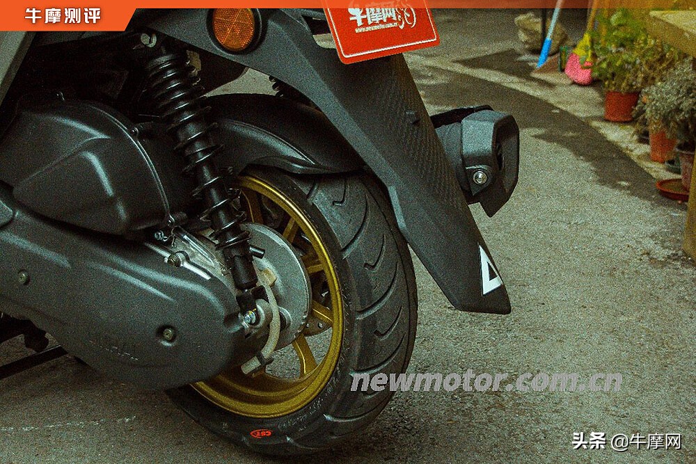小编还注意到五代目的一个亮点,它的后挡泥板是要比一般的踏板做得长的,实际防甩泥效果不错,这样后座的老婆大人再也不会吐槽你的摩托车溅泥了。