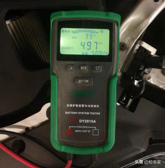 每天一个不实用的小窍门,电瓶是否亏电能够看出一辆二手车到车商手里是不是被当做“镇店之宝”停了很久时间,经过电瓶检测仪的检测,发现该车电瓶寿命为99%。另外全车油水状态还不错,可以使用一段时间再更换。