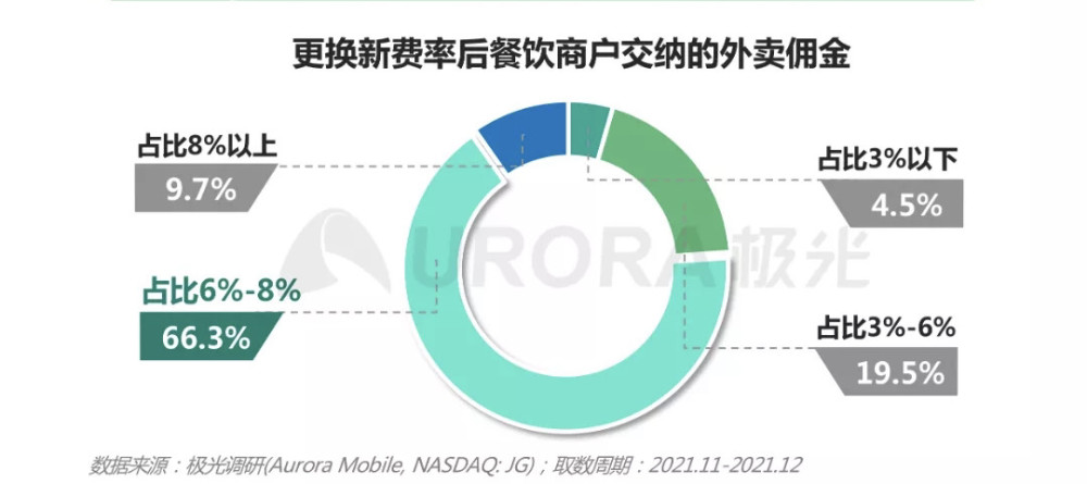 但商家担心的还是佣金问题,佣金如果过高,开拓外卖业务费力不讨好,好在费率透明化改革,缓和了商家和平台的冲突。根据《2021餐饮外卖商户研究报告》显示,平台实行费率改革后,在已更换新费率的餐饮外卖商户中,90.3%的商户表示向平台交纳的佣金低于8%,其中66.3%的商户佣金交纳比例在6%-8%区间中。