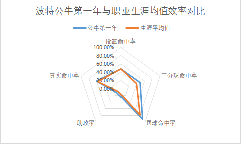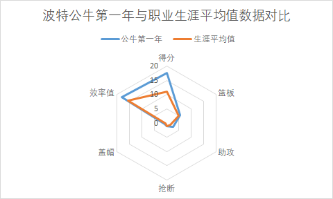 波特自从加入公牛以后,表现较之在奇才时期稳中有升,完美契合公牛战术需要。(以加盟公牛第一年数据表现作为参考,样本量足,可信度高)