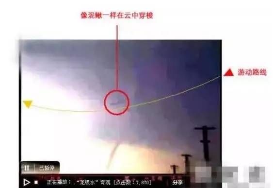 还有,2007年成都清江花园物管保安部红外线监控室的镜头中,也清楚地摄到一条飞龙。当时的成都电视台,对此作过报导及分析。许多气象专家和科学家都说:无法解释这一现象,太神奇了!(见上案例一)