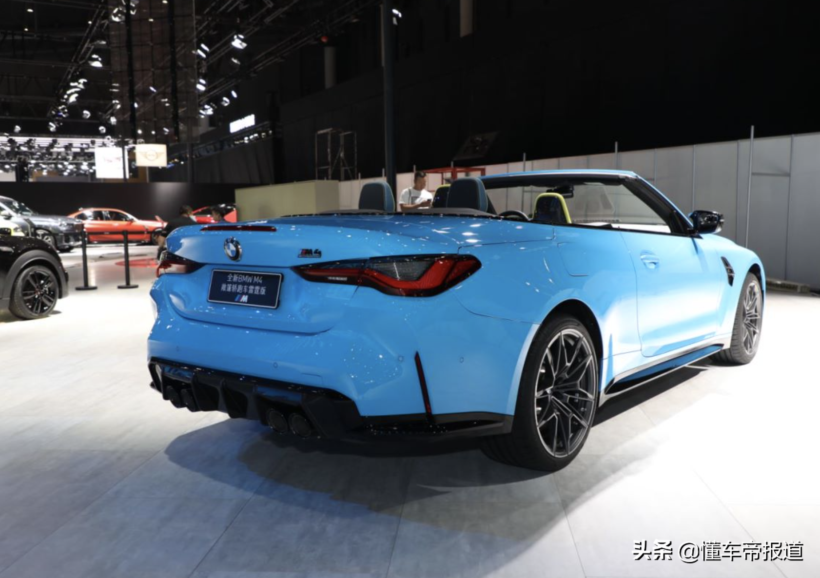 [懂车帝原创 2021成都车展] 在8月29日开幕的第24届成都国际车展上,全新BMW M4敞篷轿跑车雷霆版亮相并完成了亚洲首秀。此外,宝马还公布该车的市场指导价格为99.99万元。新车基于全新宝马M4双门轿跑车打造,但采用了软顶敞篷设计,动力部分依然搭载3.0T直列六缸双涡轮增压发动机。