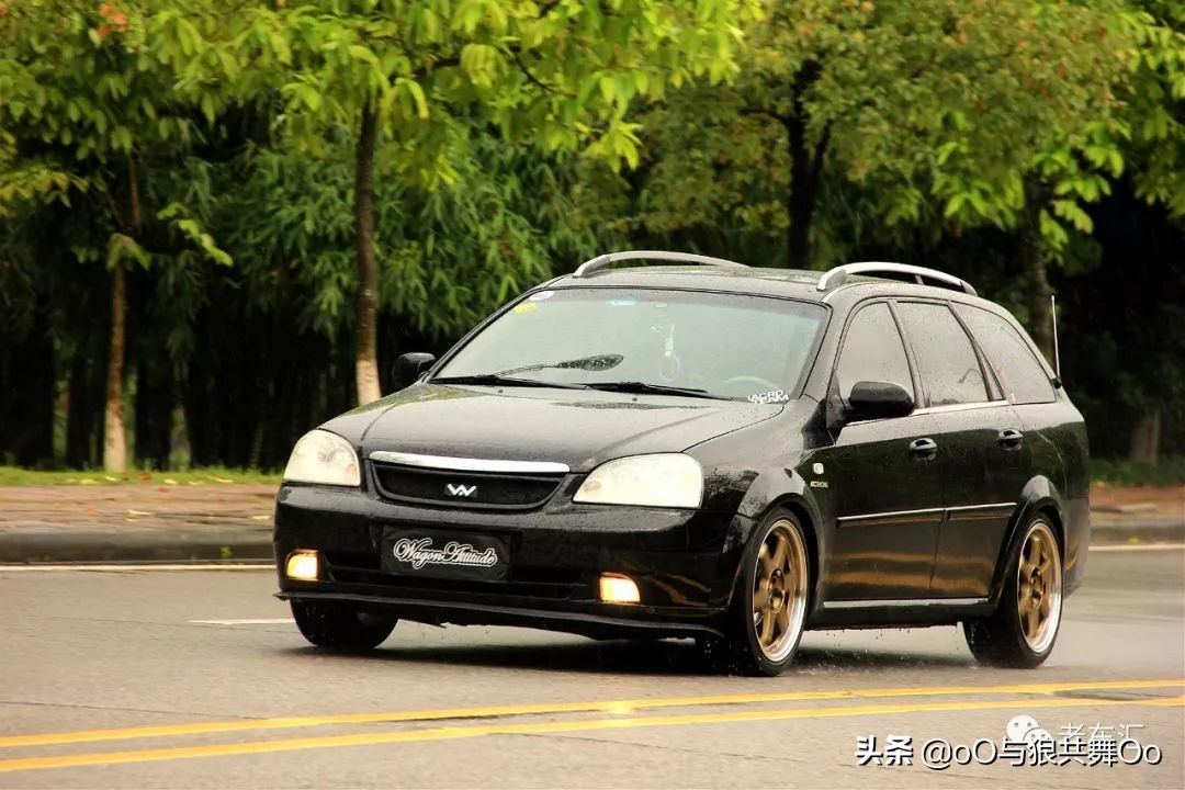 图:在众多WAGON车型里面,凯越旅行算是很普通的“货色”了,设计感不强,基本以平直线条为主,但胜在还算耐看,用BC绞牙避震降低车身之后,立马帅气了不少,据阿兴说,这套BC还是刚好有个凯越玩家还原出来的,不然分分钟要定制一套,没有现货!