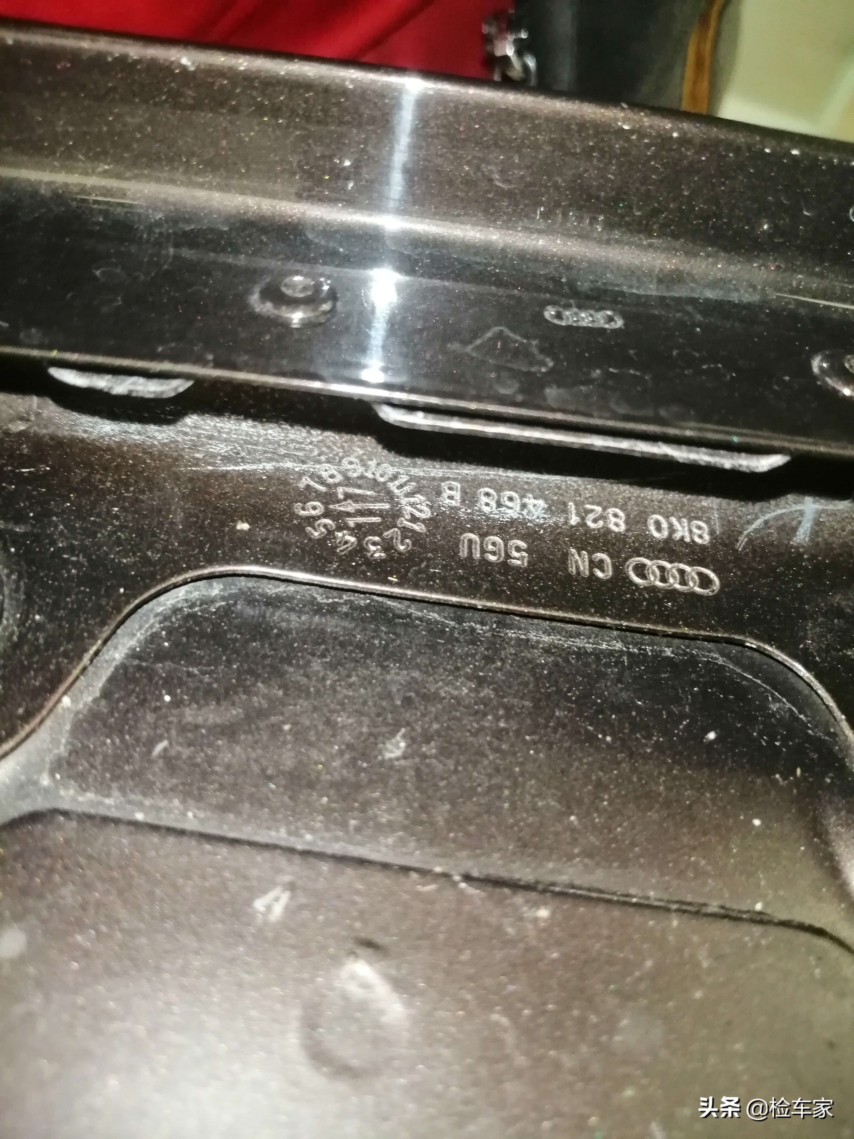 最后是底盘检测,从下面看这辆A4的底盘还是很规整的,各个护板、摆臂都没有明显大面积托底剐蹭的情况。