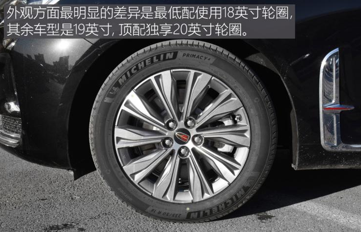 外观方面最明显的差异是最低配使用18英寸轮圈其余车型是19英寸,顶配独享20英寸轮圈。车尾造型没有差异,四平八稳的设计很有厚重感,双边共两出的排气布局也是全系一致。只有最低配缺少全景影像和倒车预警系统,对于这样一台大车来说确实不够方便。