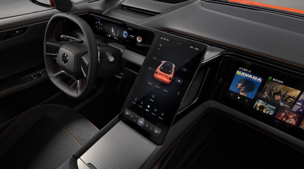 内饰方面,高合HiPhi X搭载了14.6英寸全液晶仪表、16.9英寸中央触控屏、19.9英寸副驾娱乐显示屏 3 块大尺寸液晶屏幕,流媒体内后视镜,HUD高清彩色抬头显示,方向盘触控面板及车门电容触控面板,搭建全液晶化显示和交互的沉浸式座舱,为用户带来富有想象力的视觉和交互体验;副驾侧IP 前移,副驾座椅向前移动的空间增大,带来全员尊重的航舰乘员座椅布 局与驾乘享受。