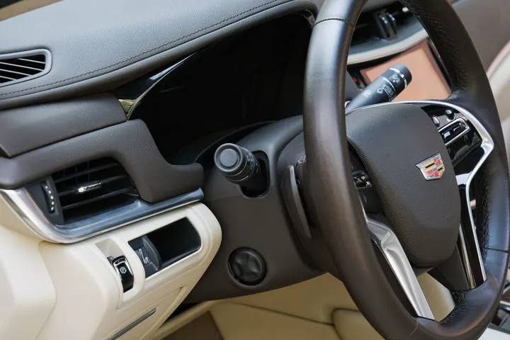 文化传承相对欧洲来说显得有限,但带来的好处就是很强的开拓创新精神。汽车进入全面电气化的新世代后美系车也拿出了自己对现代豪华科技的理解,基于触摸和语音的CUE车载操作系统。在不通电时你甚至完全不知道方向盘和中控台上这些按键和饰条究竟有什么作用,亮黑色下透着些许深蓝很有科技感。