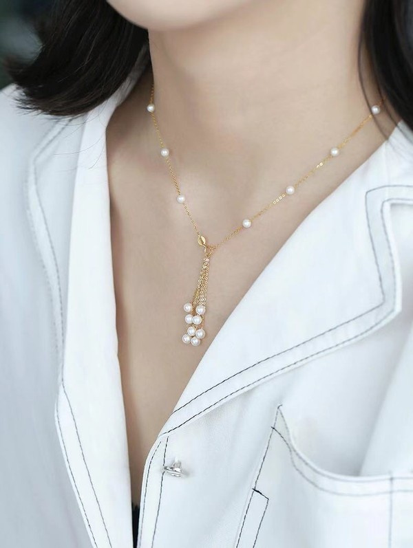 唯有经典才能永恒,这串珍珠项链的风格是很常见的,因此成为珍珠项链中最经典的款式,无论是颜色还是款式的设计都非常大气,佩戴起来永远不会过时。构成这款项链的珍珠大小都是相同的,它们连接在一起非常有造型感,而且这些珍珠的质地都非常高级,戴在脖间显得非常优雅。在选择珍珠项链的时候,颜色和关泽一定是首选,唯有光泽感十足才能显得格外出彩。