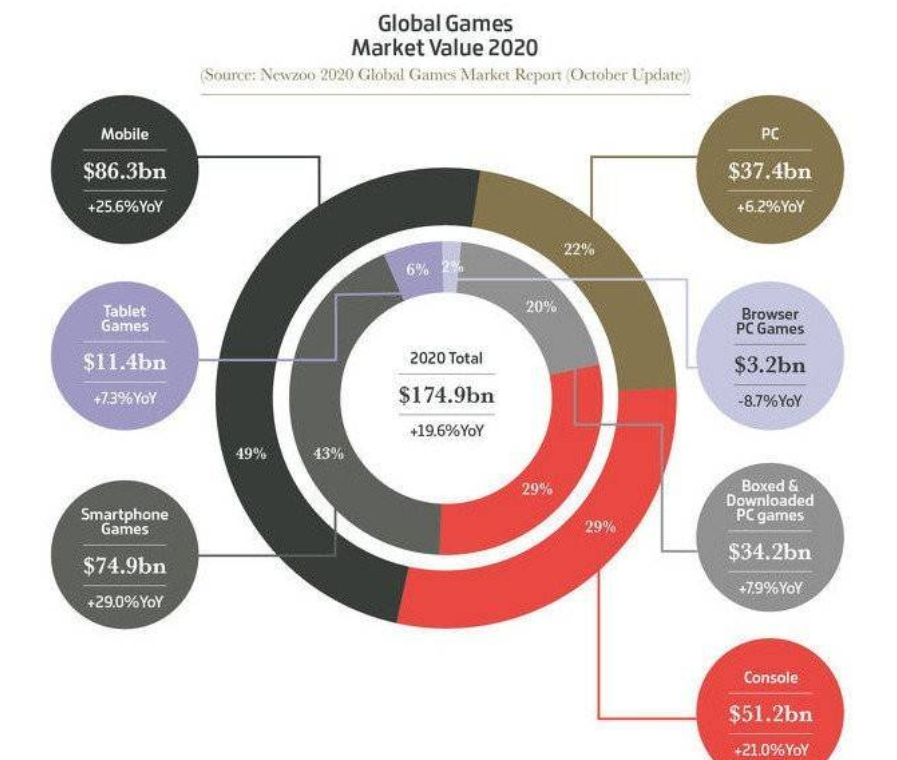 根据资深游戏外媒GamesIndustry机构2020年度年终全球游戏数据统计,移动端玩家占比达到49%,总价值863亿美金,移动端的占比及估值,完全可以比拟PC端及主机端之和。由此可见,各大游戏厂商愈发的重视移动端不是没有理由的,暴雪亦是如此。