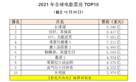 没有海外电影市场的票房支撑,仅靠本土电影市场大卖,即使是《长津湖》《战狼2》这样的超级爆款国产大片,也没法在全球电影市场与好莱坞超级大片一争票房高低。