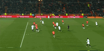 比赛第39分钟,洛里昂取得领先,勒费埃在禁区线得球直接横传助攻蒙康杜特完成远射世界波破门,洛里昂1-0巴黎圣日耳曼。